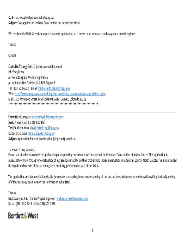 Cc: Byron, Joseph Byron.Joseph@epa.gov Subject: FW: Application for New Construction (air permit) submittal We received the MA Greenhouse project permit application, so it needs to be processed and