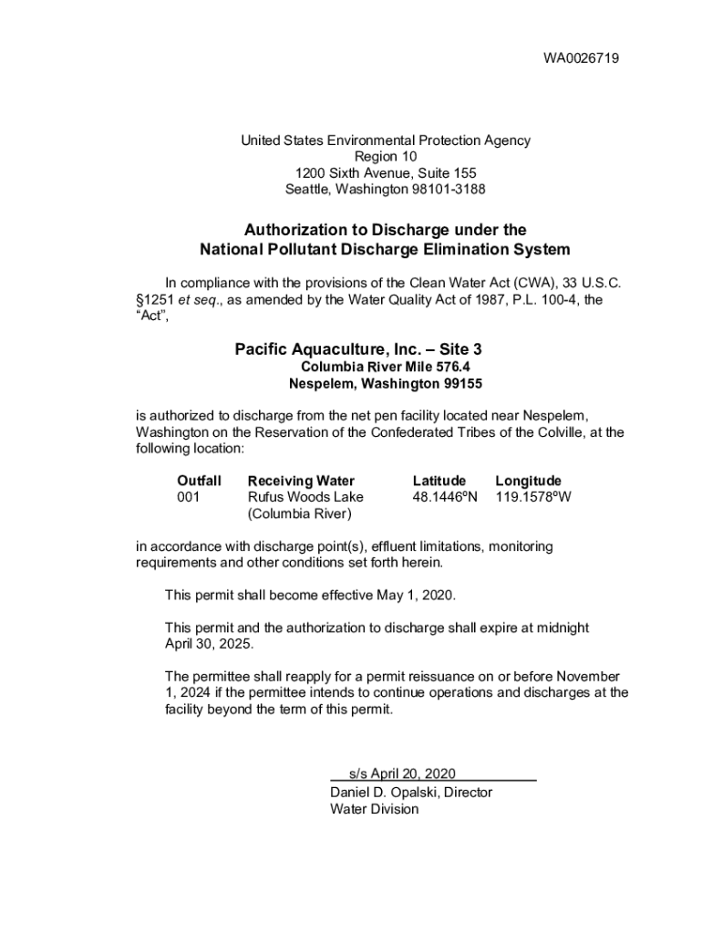 Get the free NPDES Permit for Pacific Aquaculture, Inc. Site 3. Authorizes the discharge of pollu...