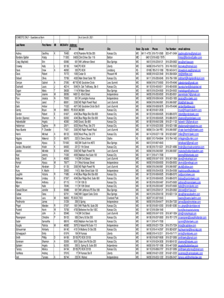 DOMESTIC ONLY Guardians' ad items of June 24, 2021Last NameFirst NameMIAubreyGeoffreyKBordersSpitlerKristy71500Craig (Mayfield) Crowley Davis Dotard Woman Richard Duran Foster Fox Brick Gab Gentry