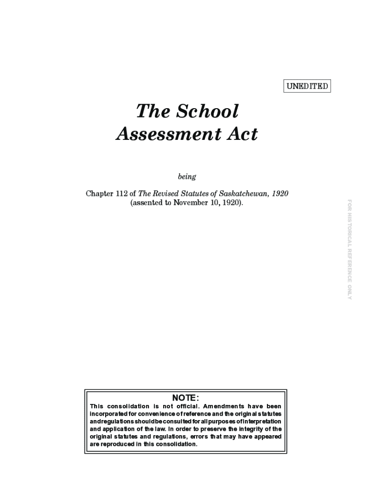 Unedited School Assessment Act banknote:This consolidation is not official. Amendments have been incorporated for convenience of reference and the original statutes and regulations should be consulted