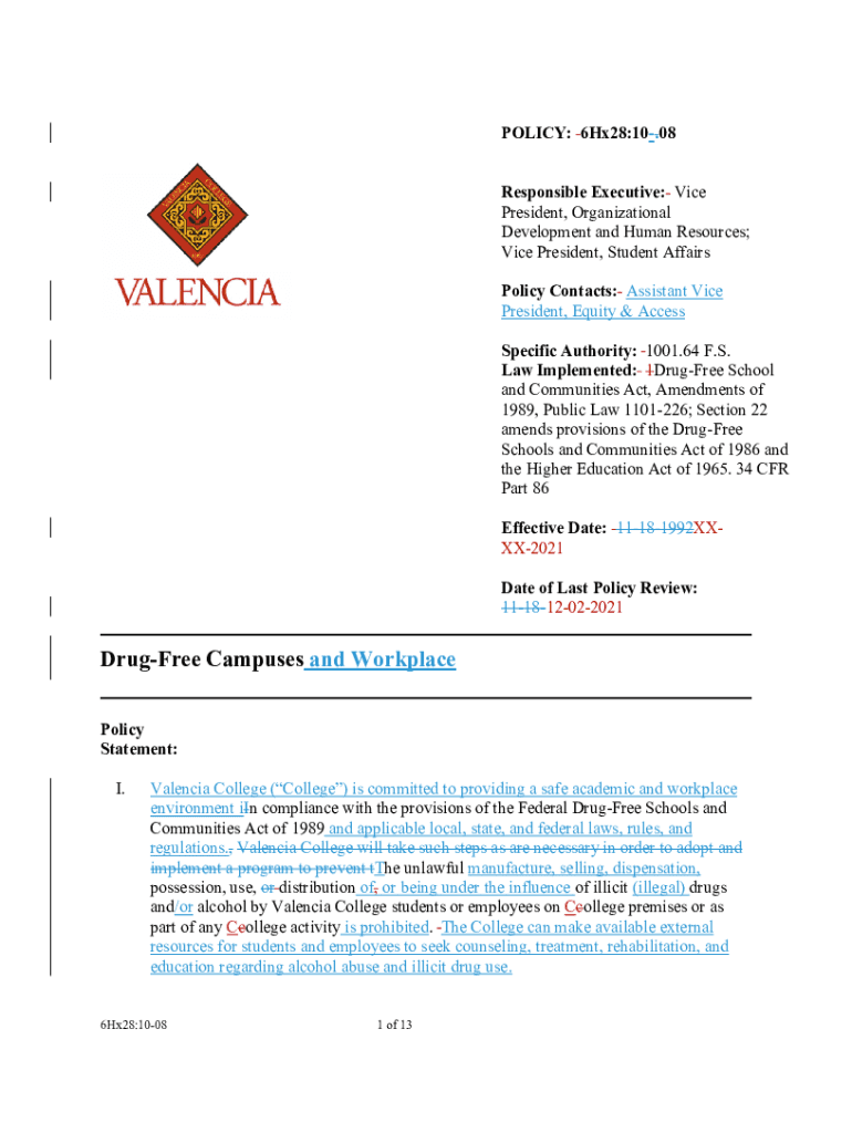Get the Drug-Free Campuses and WorkplaceValencia College