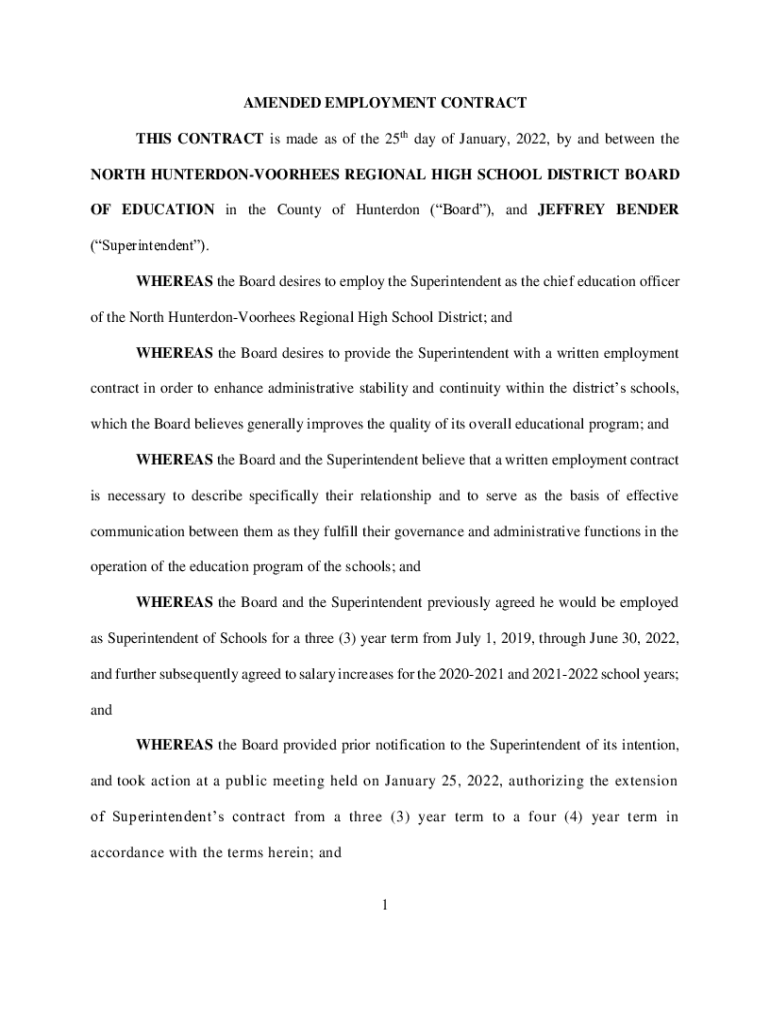 AMENDED EMPLOYMENT CONTRACT THIS CONTRACT is made as of the 25th day of January 2022, by and between the NORTH HUNTERDONVOORHEES REGIONAL HIGH SCHOOL DISTRICT BOARD OF EDUCATION in the County of Hunter