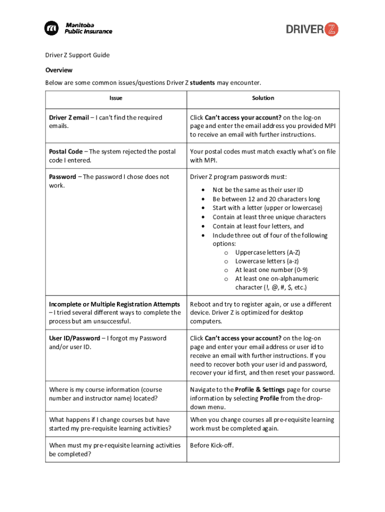 Driver Z Support Guide Overview Below are some common issues/questions Driver Z students may encounter. IssueSolutionDriver Z email I can't find the required emails. Click Can't access your account?