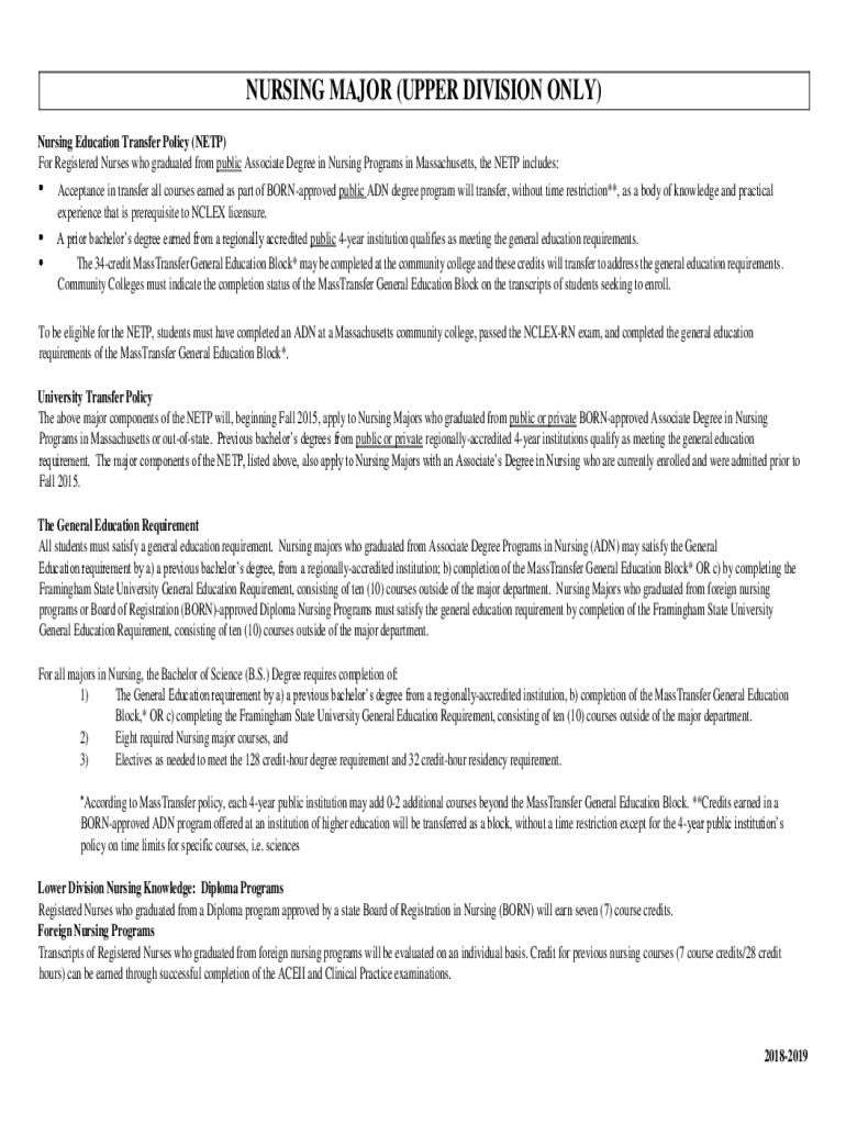 Get the free NURSING MAJOR (UPPER DIVISION ONLY) - Framingham State University