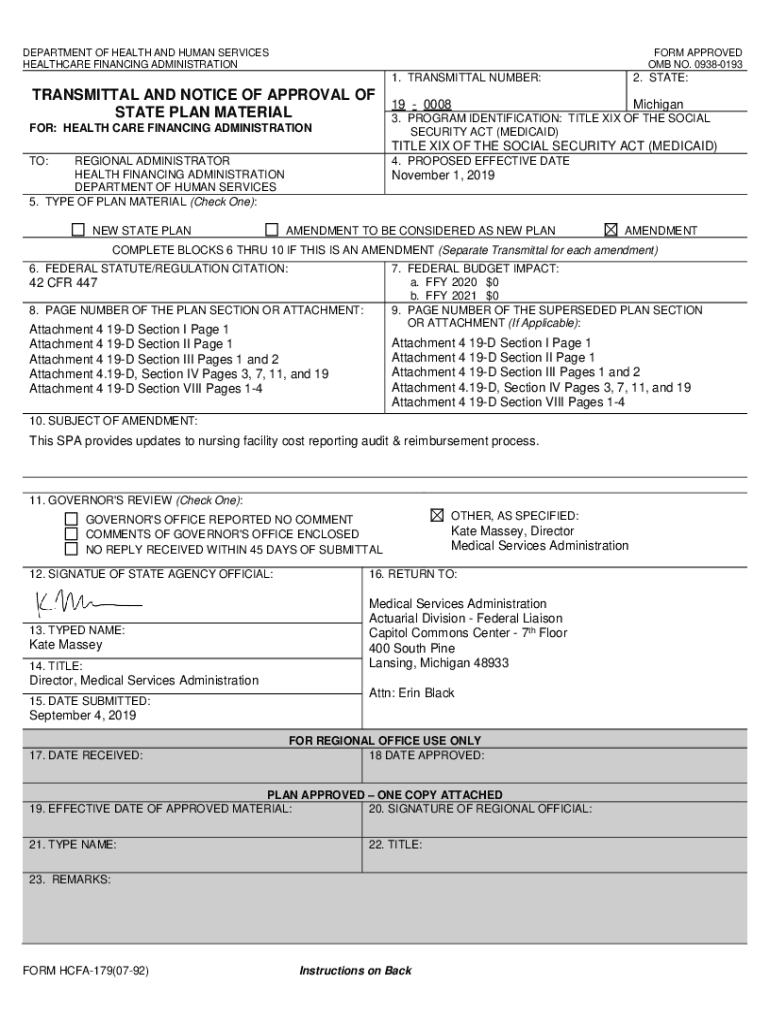 DEPARTMENT OF HEALTH AND HUMAN SERVICES HEALTHCARE FINANCING ADMINISTRATIONFORM APPROVED OMB NO. 09380193TRANSMITTAL AND NOTICE OF APPROVAL OF STATE PLAN MATERIAL FOR: HEALTH CARE FINANCING ADMINISTRATION1.