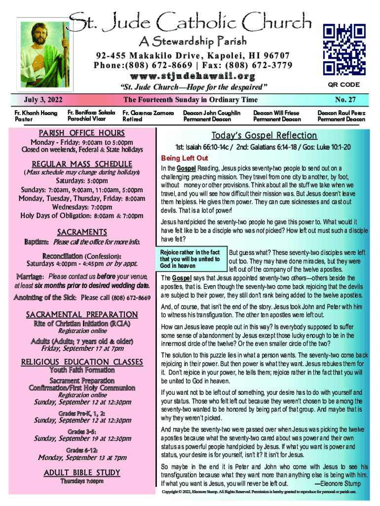 A Stewardship Parish 9 2 4 5 5 Ma key I l o Dr i v e, K a p o l e i, H I 9 6 7 0 7 P h o n e : (8 0 8) 6 7 2 8 6 6 9 | Fa x : (8 0 8) 6 7 2 3 7 7 9 w w w. s t j u d e h a w an i. O r g St. Jude Church