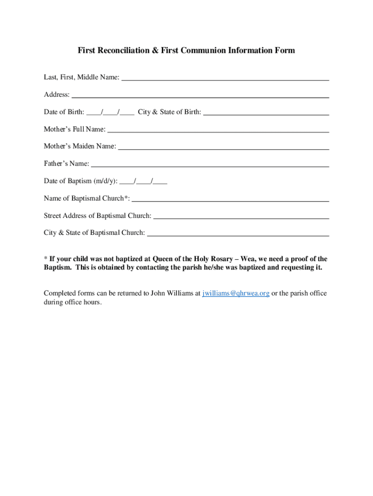 Get the free First Reconciliation & First Communion Information Form