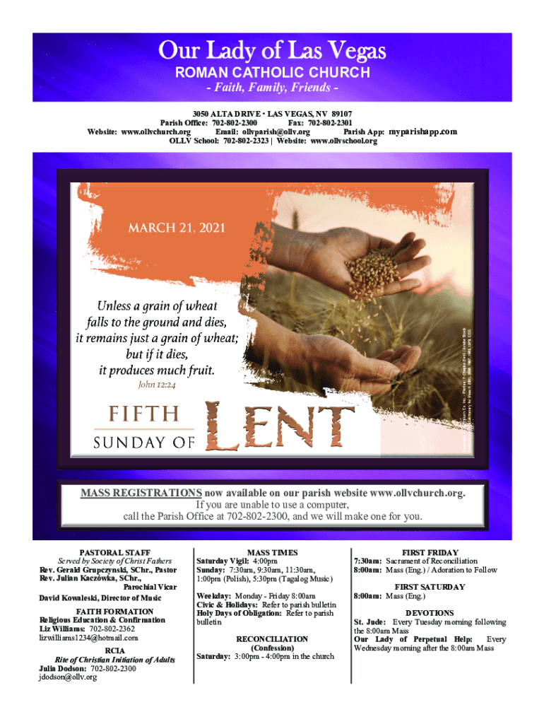 Our Lady of Las Vegas ROMAN CATHOLIC CHURCH Faith, Family, Friends 3050 ALTA DRIVE LAS VEGAS, NV 89107 Parish Office: 7028022300 Fax: 7028022301 Website: www.ollvchurch.org Email: ollvparish@ollv.org