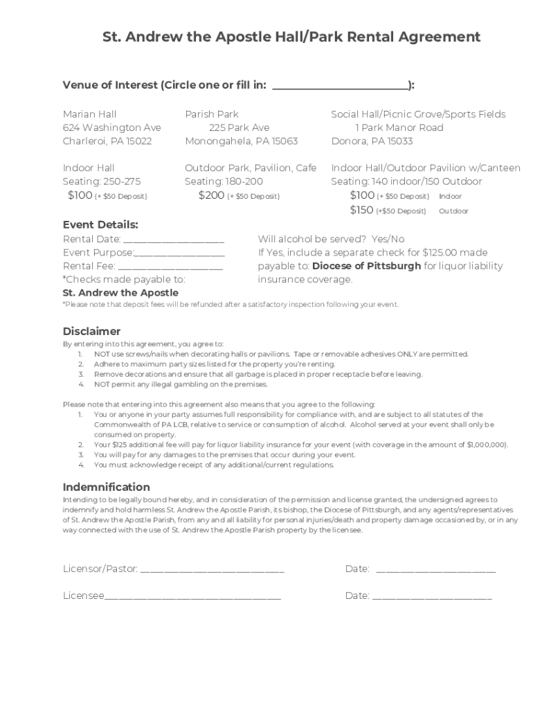 Get the free St. Andrew the Apostle Hall/Park Rental Agreement