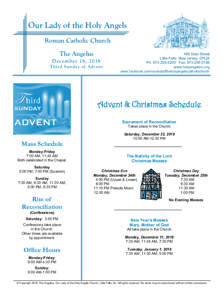 Our Lady of the Holy Angels Roman Catholic Church The Angelus465 Main Street Little Falls, New Jersey 07424 pH: 9732565200 Fax: 9732560185 www.holyangelsrc.orgD e c e m b e r 16, 2 018 T h i r d S