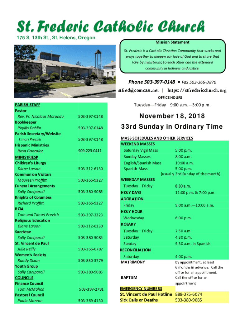 Fill out your wwwwhereorgcomst-frederic-catholic-churchst frederic catholic church online with pdfFiller!