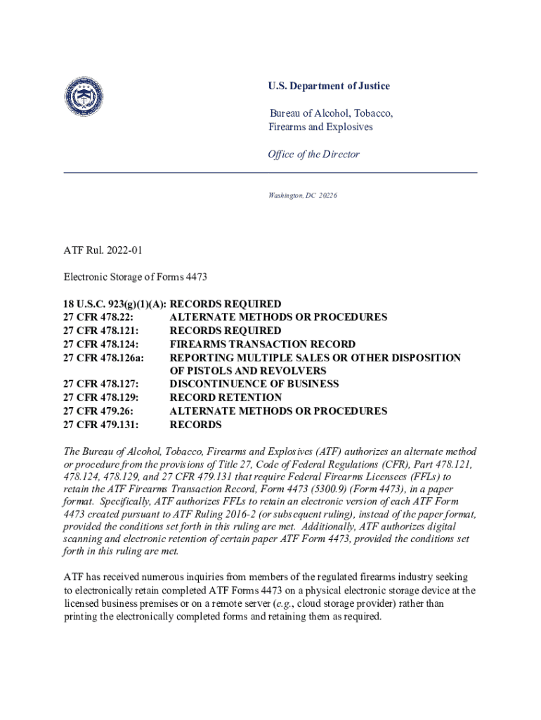 U.S. Department of Justice Bureau of Alcohol, Tobacco, Firearms and Explosives Office of the Director Washington, DC 20226ATF Run. 202201 Electronic Storage of Forms 4473 18 U.S.C. 923(g)(1)(A): RECORDS