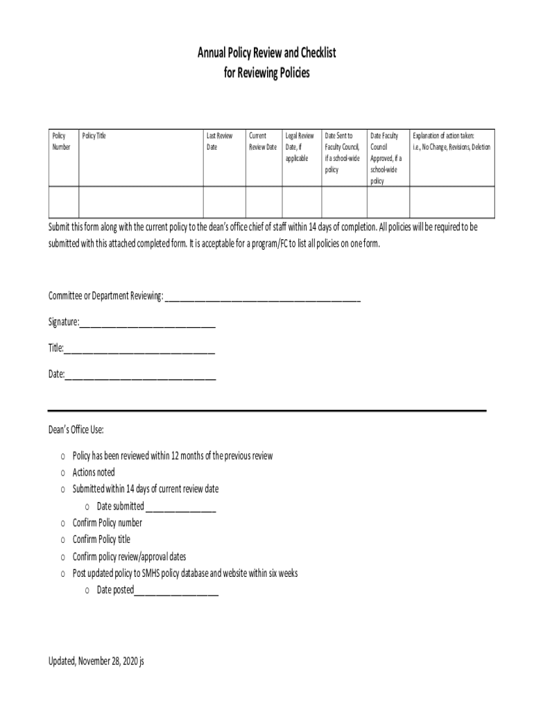 Edit your annual-policy-review-checklistpdf - und school form online