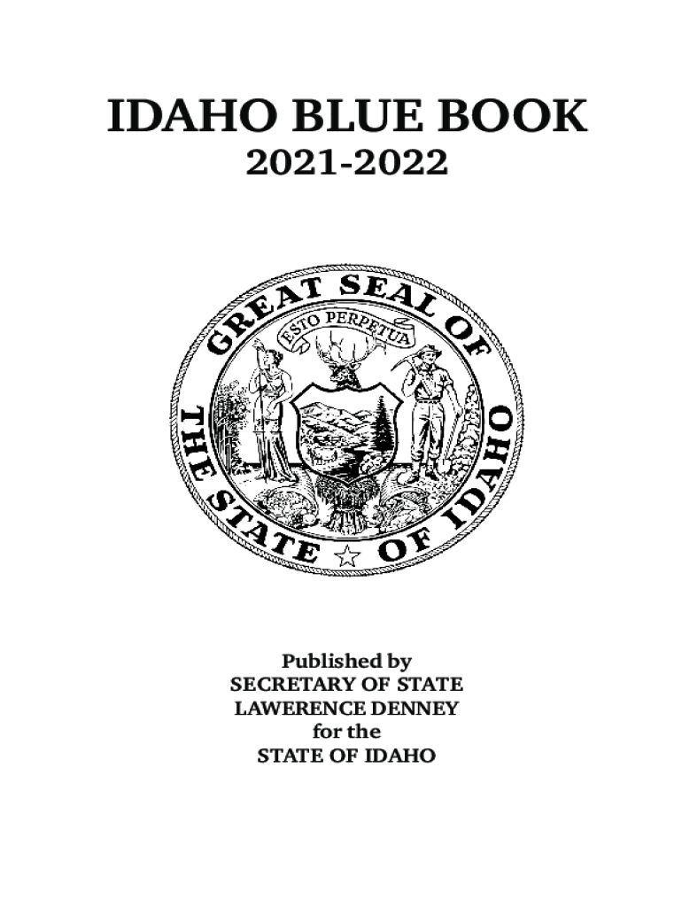IDAHO BLUE BOOK 20212022Published by SECRETARY OF STATE LAWRENCE DENNY for the STATE OF IDAHOIdaho Blue Book The Idaho Blue Book is distributed free of charge to libraries, schools and government