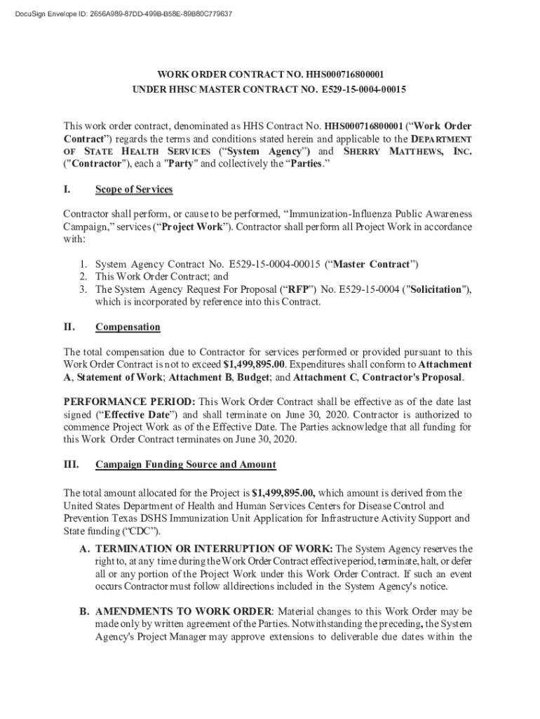 DocuSign Envelope ID: 2656A98987DD499BB58E89B80C779637WORK ORDER CONTRACT NO. HHS000716800001 UNDER HHSC MASTER CONTRACT NO. E52915000400015This work order contract, denominated as HHS Contract No.