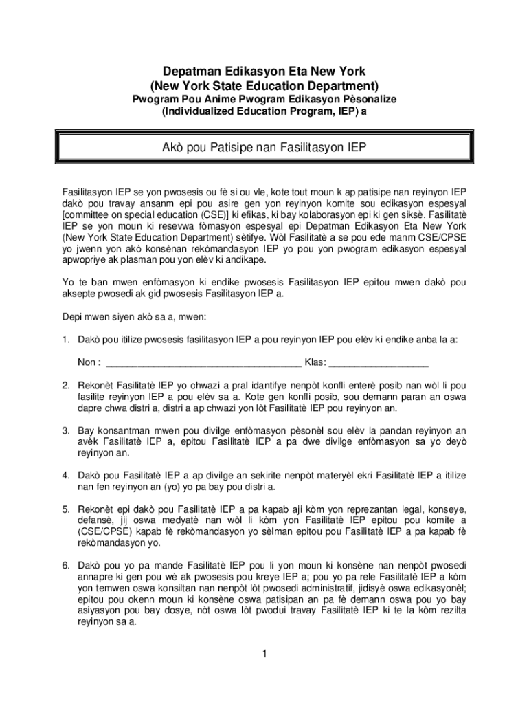 Educators, school administrators, and parents of students who require IEP services in Haitian Creole may be required to file for IEP facilitation.