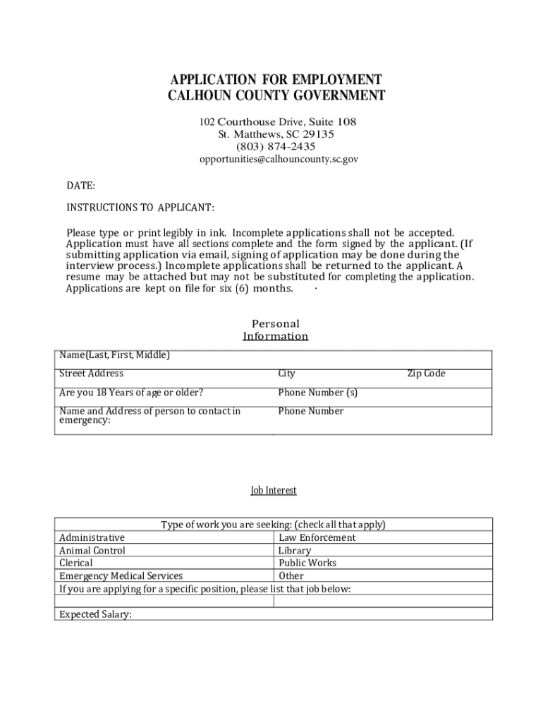 Employment Opportunitiescalhoun County is not the form you're looking for?Search for another form here.