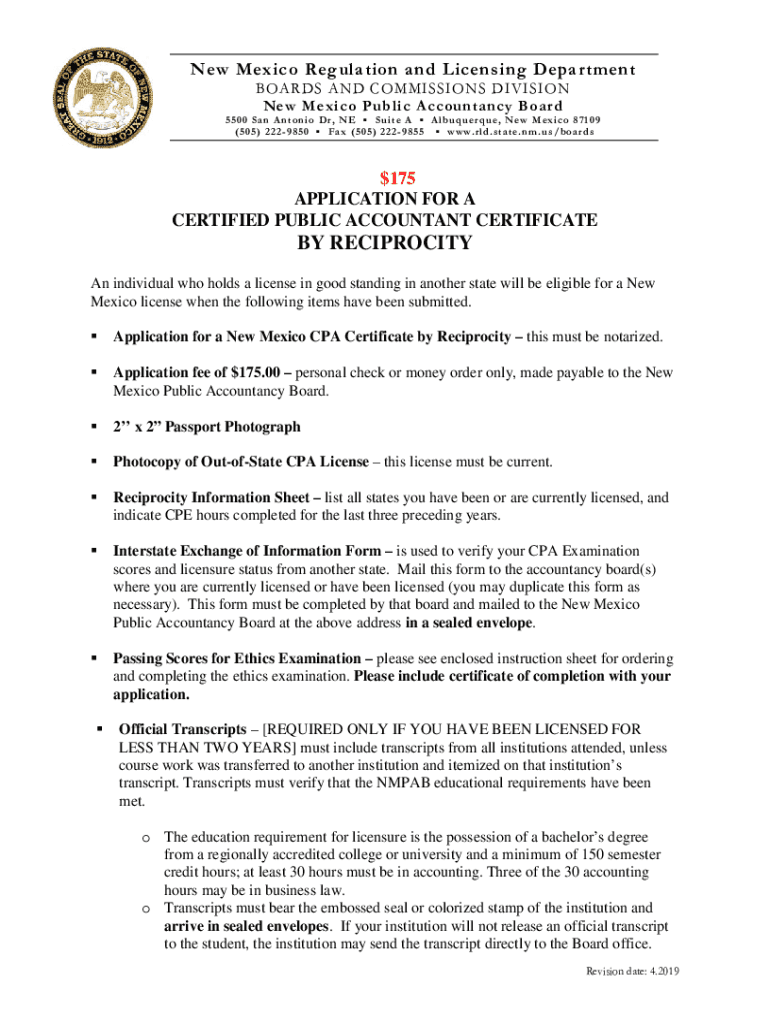 New Mexico Regulation and Licensing Department BOARDS AND COMMISSIONS DIVISION New Mexico Public Accountancy Board5500 San An ton Io Dr, N E S u it e A lb up u her EU e, New Mexico 871 09 (505) 2229850
