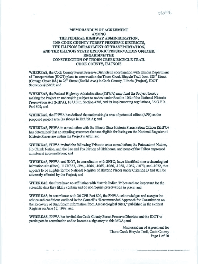 MEMORANDUM OF AGREEMENT AMONG THE FEDERAL HIGHWAY ADMINISTRATION, THE COOK COUNTY FOREST PRESERVE DISTRICTS, THE ILLINOIS Department OF TRANSPORTATION, AND THE ILLINOIS STATE HISTORIC PRESERVATION