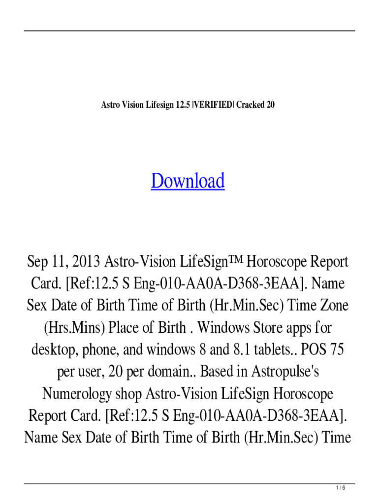 Castro Vision Life sign 12.5 |VERIFIED| Cracked 20DownloadSep 11, 2013 Provision Lifespan Horoscope Report