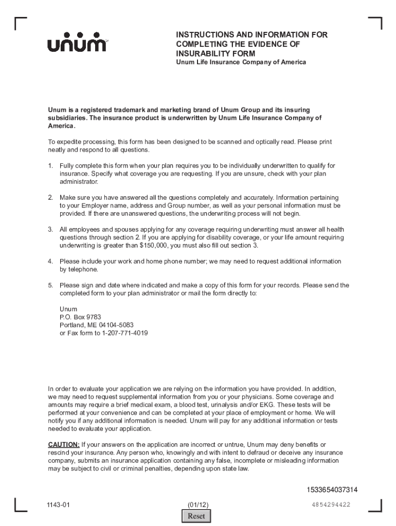 Get the free www.oxy.edusitesdefaultEVIDENCE OF INSURABILITY FORM Unum Life Insurance Company of ...
