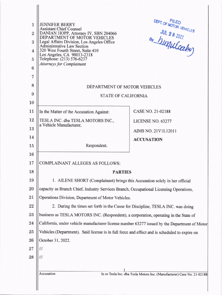 1, 34 56oermJENNIFER BERRY Assistant Chief Counsel DAMIAN HOPE, Attorney IV, SON 204066 DEPARTMENT OF MOTOR VEHICLES Legal Affairs Division, Los Angeles Office Administrative Law Section 320 West