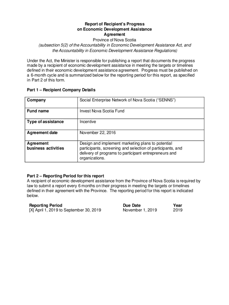 Report of Recipients Progress on Economic Development Assistance Agreement Province of Nova Scotia (subsection 5(2) of the Accountability in Economic Development Assistance Act, and the Accountability