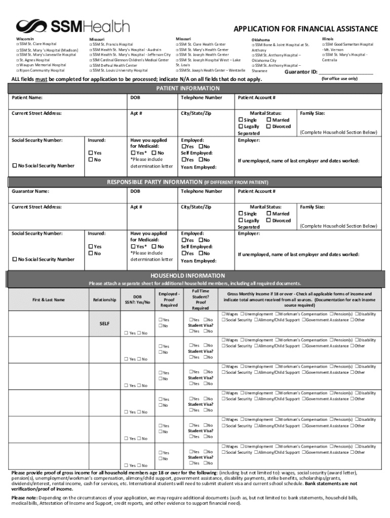 Financial Assistance Application Dear Patient: IMPORTANT YOU MAY BE ABLE TO RECEIVE FREE OR DISCOUNTED CARE: Completing this application will help SSM Health determine if you can receive free or discounted