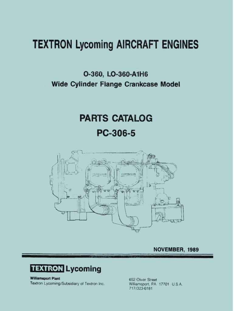 NEUTRON LycomingAIRCRAFT ENGINES O360, LO360A1H6 Wide Cylinder Flange Crankcase Departs CATALOG PC3065NOVEMBER. Williamsport Plant Tex tron Lycoming/Subsidiary652 Oliver Street of Tex tron Inc.1989TEXTRON