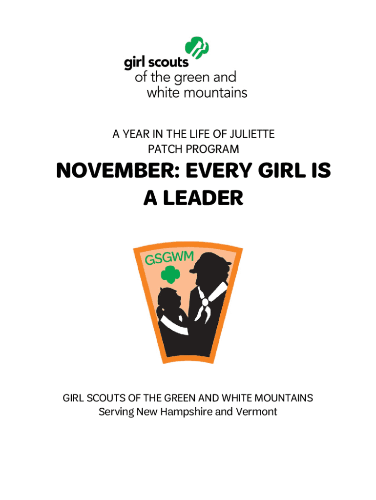 A YEAR IN THE LIFE OF JULIETTE PATCH PROGRAMNOVEMBER: EVERY GIRL IS A PAPERGIRL SCOUTS OF THE GREEN AND WHITE MOUNTAINS Serving New Hampshire and Vermont YEAR IN THE LIFE OF JULIETTE PATCH PROGRAMNOVEMBER: