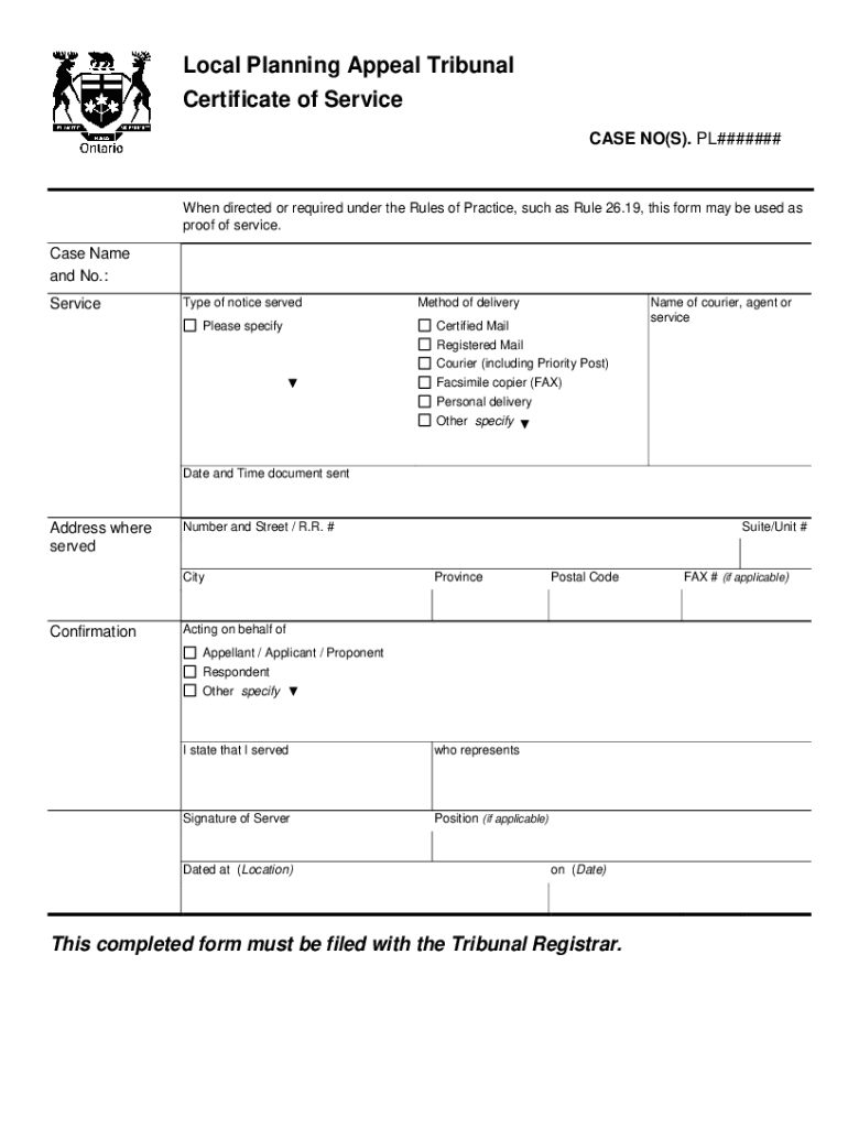 Get the free Local Planning Appeal Tribunal Certificate of Service