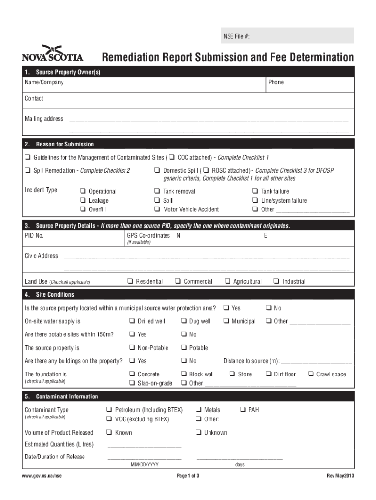 Pronuclear Forms File #:Remediation Report Submission and Fee Determination Environment 1. Source Property Owner(s) Name/CompanyPhoneContact Mailing address ___ ______ 2. Reason for Submission Guidelines