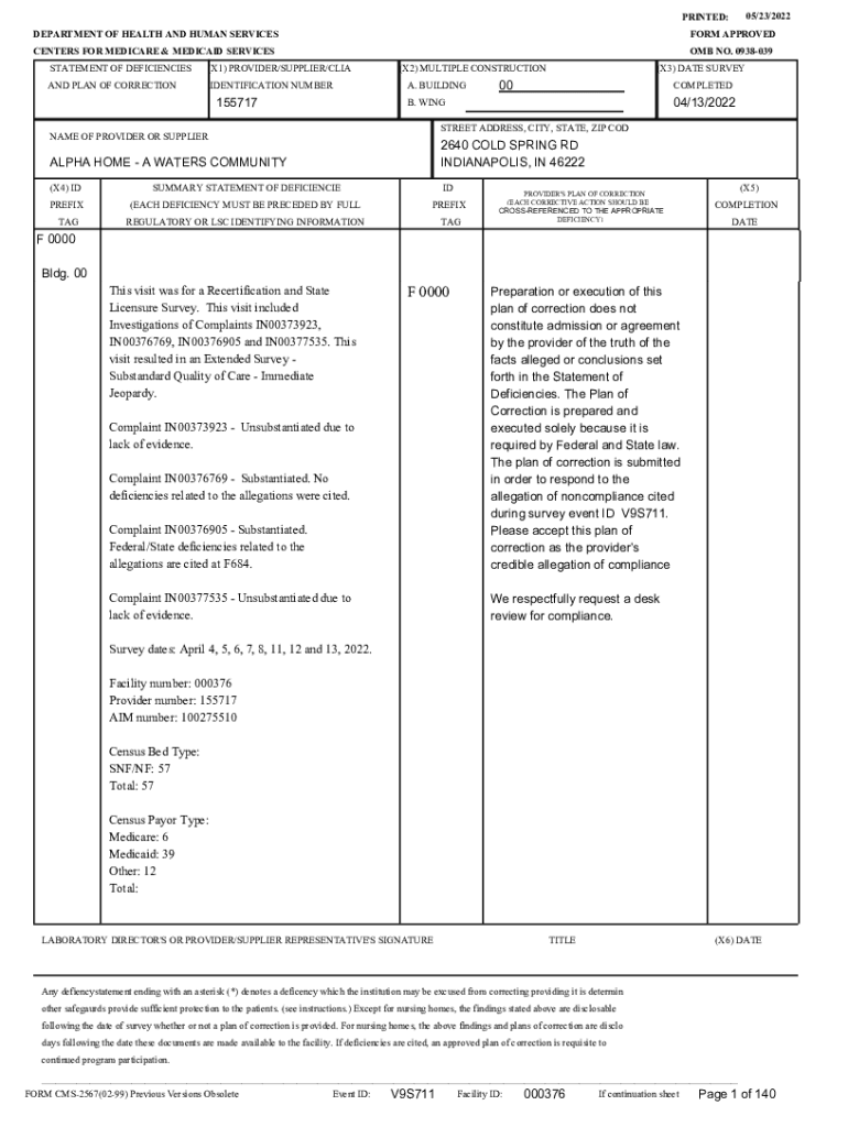 Get the free PRINTED: 07/27/2022 DEPARTMENT OF HEALTH AND HUMAN SERVICES ... - Indiana