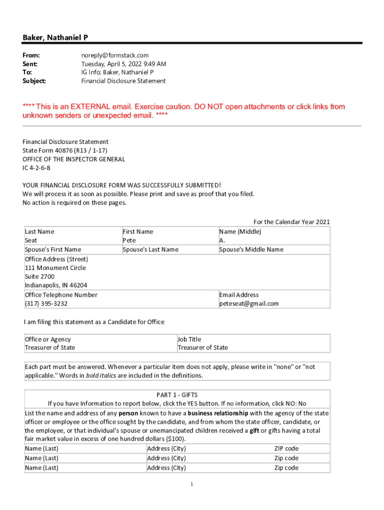 Baker, Nathaniel P From: Sent: To: Subject:noreply@formstack.com Tuesday, April 5, 2022 9:49 AM IG Info; Baker, Nathaniel P Financial Disclosure Statement**** This is an EXTERNAL email. Exercise caution.