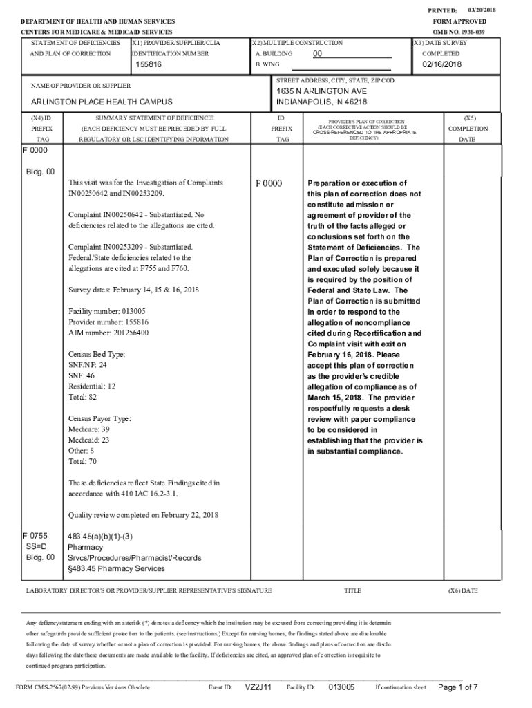 STATEMENT OF DEFICIENCIES(X1) PROVIDER/SUPPLIER/LIGAND PLAN OF CORRECTIONIDENTIFICATION