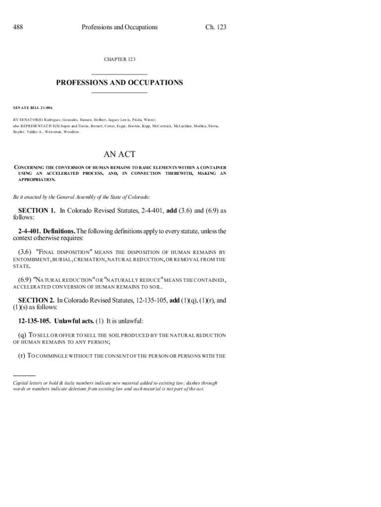 Get the free Human Remains Natural Reduction SoilColorado General Assembly