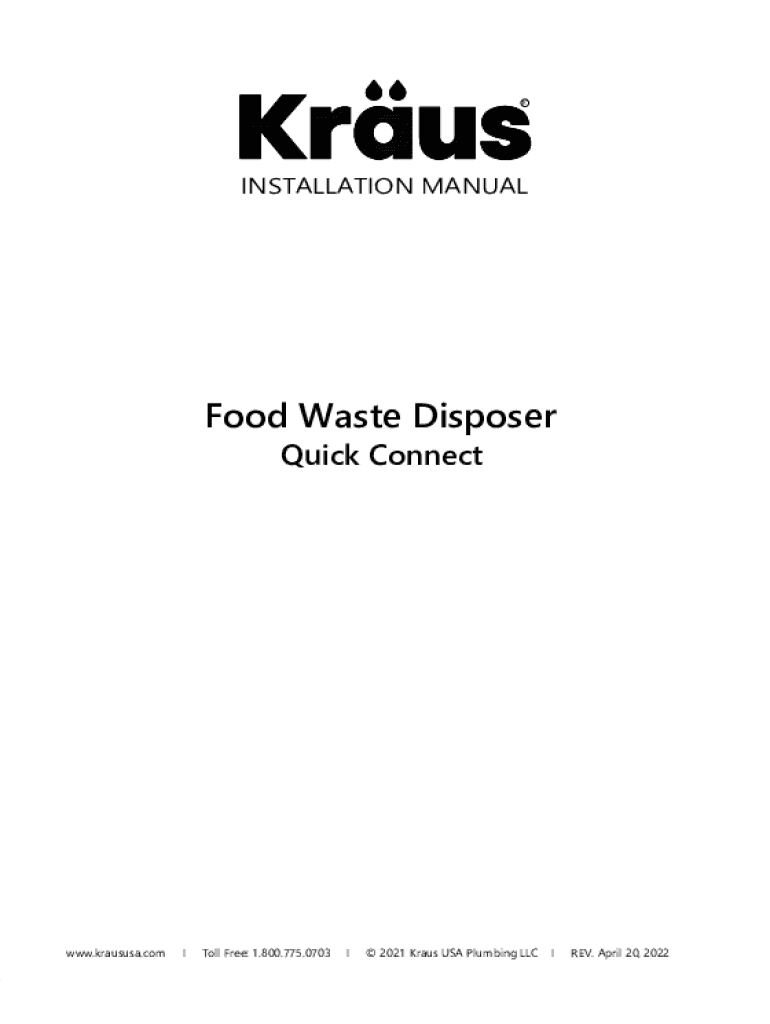 Quick Connected.krauts. Capitol Free: 1.800.775.0703I 2021 Kraus USA Plumbing CLAIRE. April 20, 2022Congratulations on the purchase of your new
