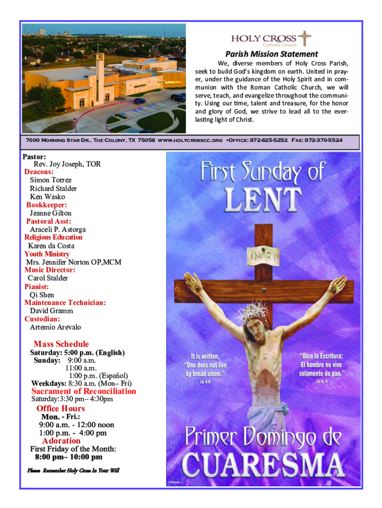 All members of the parish community are encouraged to contribute to the mission statement of Holy Cross Parish.
