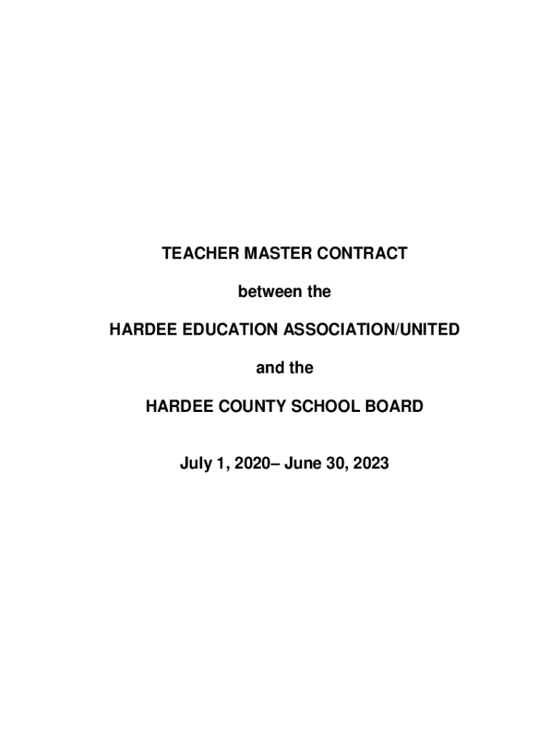 TEACHER MASTER CONTRACT between the HARDER EDUCATION ASSOCIATION/UNITED and the HARDER COUNTY SCHOOL BOARD July 1, 2020, June 30, 2023TABLE OF CONTENTS ARTICLE 1 RECOGNITION .....................................................................................................................1
