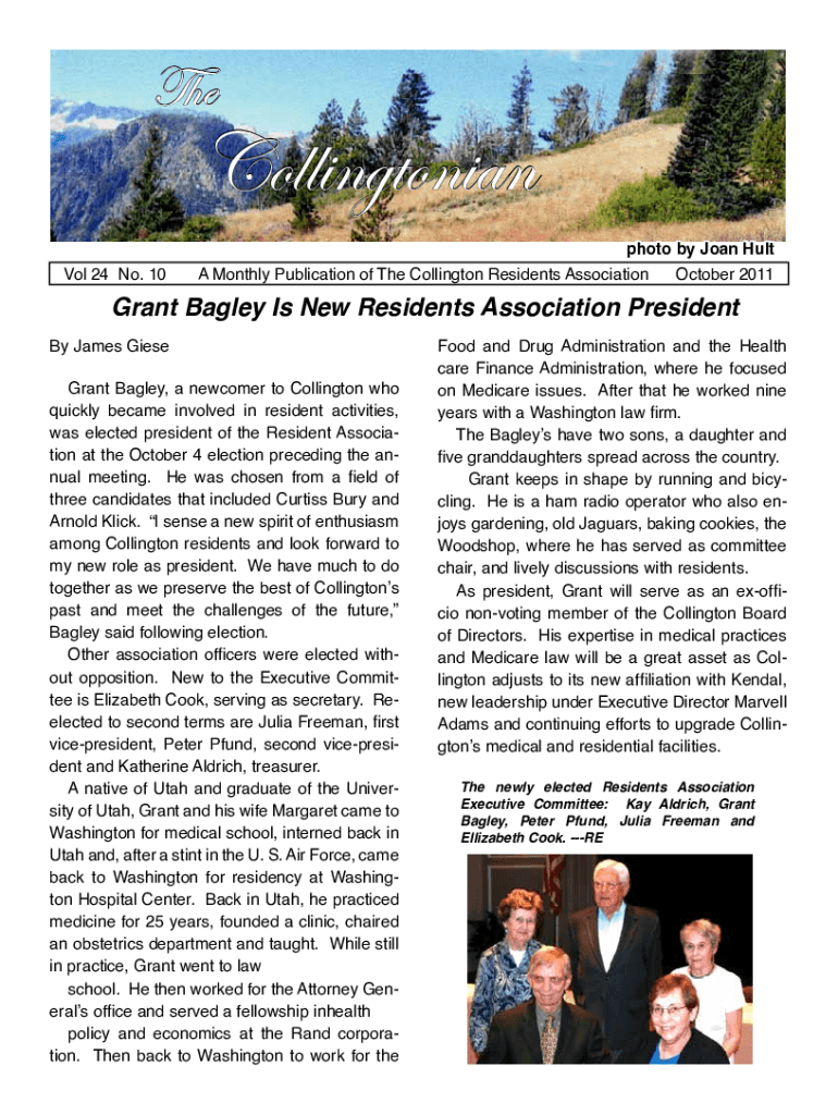 TheCollingtonian Vol 24 No. 10photo by Joan Hula Monthly Publication of The Wellington Residents Association October 2011Grant Bailey Is New Residents Association President James Geese Grant Bailey,