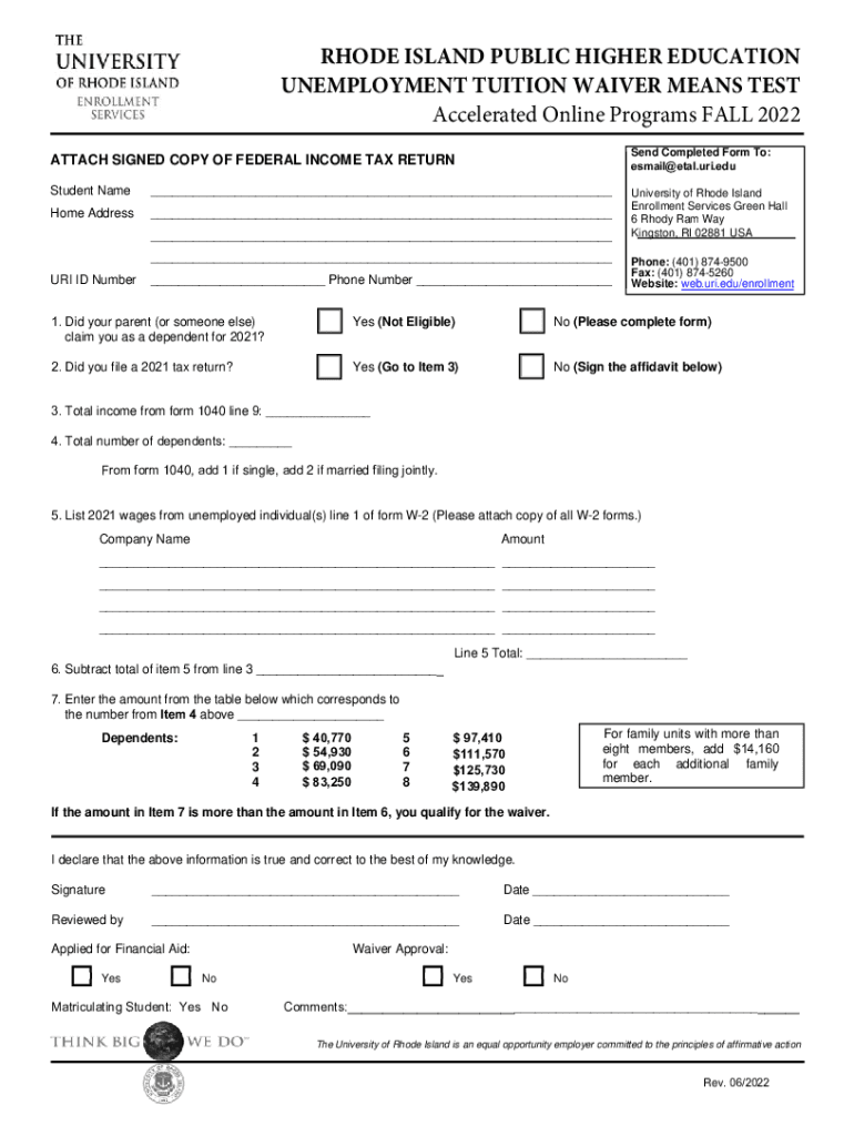 UNEMPLOYMENT TUITION WAIVER INSTRUCTIONS Accelerated Online Programs FALL 2022 Individuals receiving unemployment benefits from the State of Rhode Island may be eligible for a waiver of tuition and
