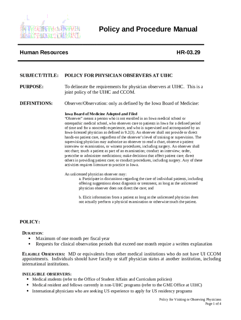 What is Policy for Visiting or Observing Physicians - medicine uiowa Form?