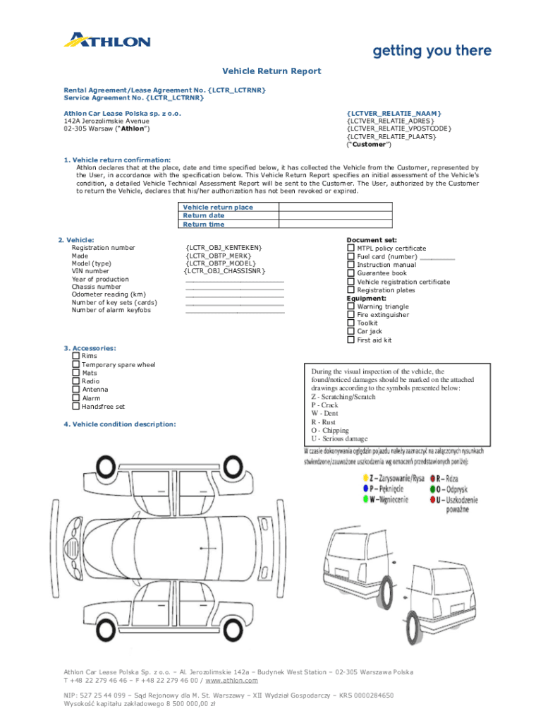 Vehicle Return Report Rental Agreement/Lease Agreement No. LCTR_LCTRNR Service Agreement No. LCTR_LCTRNR Avalon Car Lease Polska SP. z o.o. 142A Jerozolimskie Avenue 02305 Warsaw (Avalon)LCTVER_RELATIE_NAM