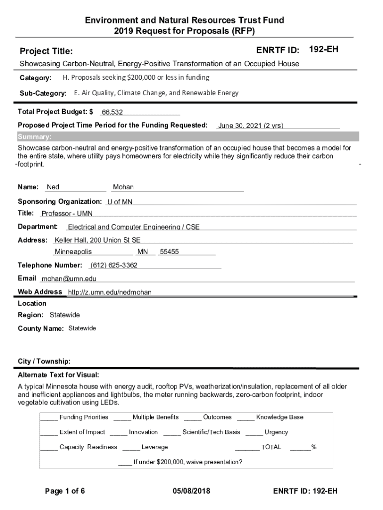 To fill out ENRTF ID 192-EH, follow the guidelines provided on the form, which typically involves providing project details, budgets, and reporting on progress.
