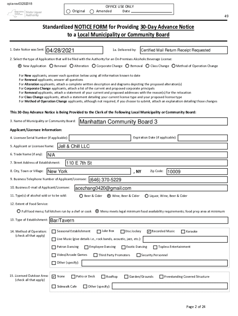 Oplarev03292018OFFICE USE ONLY Amended DateOriginal49Standardized NOTICE FORM for Providing 30Day Advance Notice to a Local Municipality or Community Board 1. Date Notice was Sent:1a. Delivered by:04/28/2021Certified