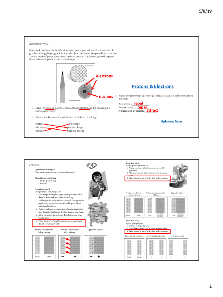 5/8/19Activity Sheet Chapter 4, Lesson 1 Protons, Neutrons, and ElectronsName ___3. Would the following subatomic particles attract each other or repel one another? Date ___Two protons ___ Two electrons