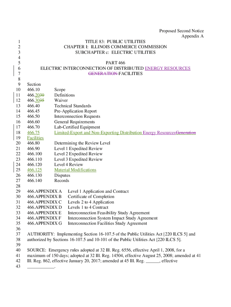 Proposed Second Notice Appendix A 1 2 3 4 5 6 7 8 9 10 11 12 13 14 15 16 17 18 19 20 21 22 23 24 25 26 27 28 29 30 31 32 33 34 35 36 37 38 39 40 41 42 43TITLE 83: PUBLIC UTILITIES CHAPTER I: ILLINOIS
