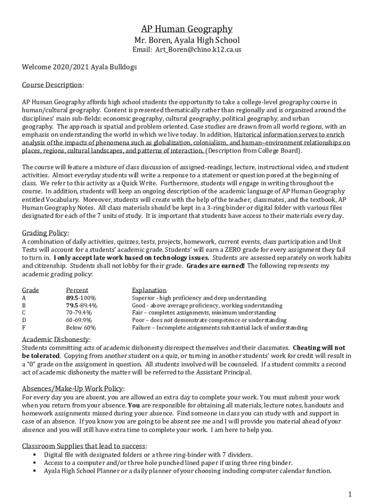 Get the free AP Human Geography Mr. Boren, Ayala High School Email: Art Borenchino ...