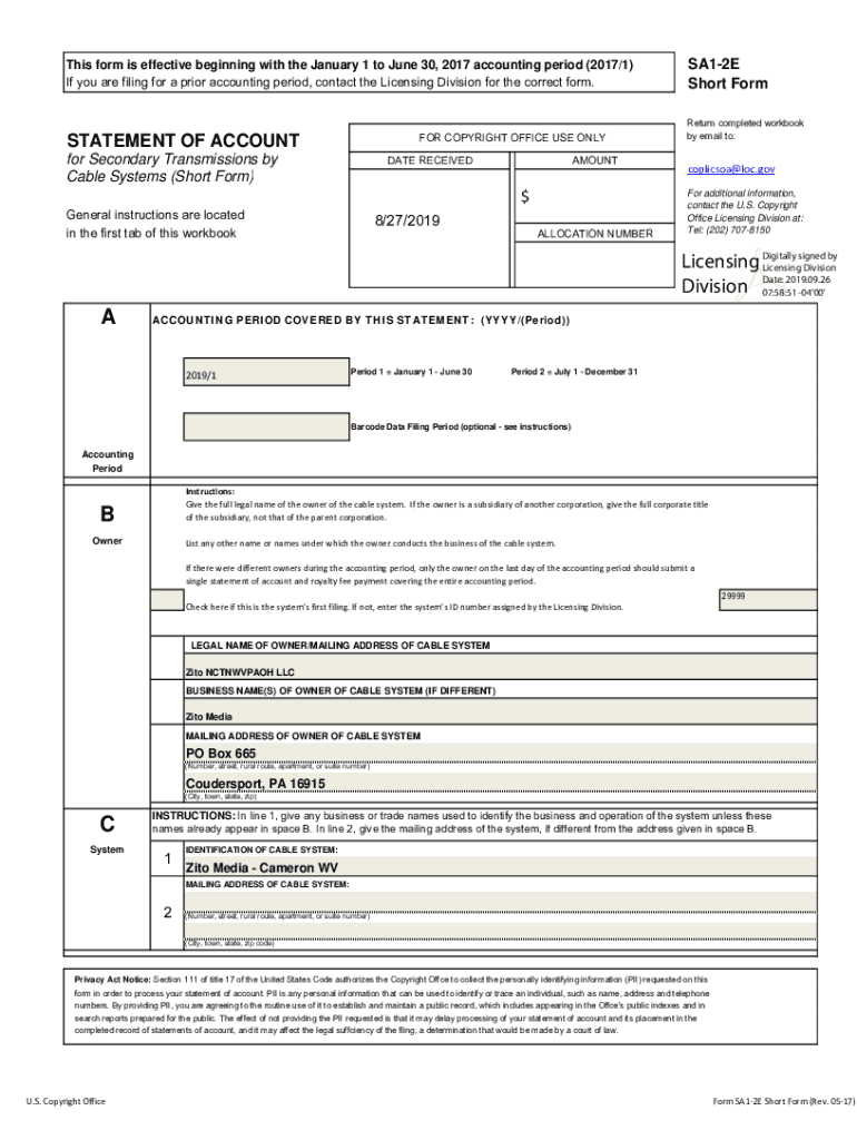 This form is effective beginning with the January 1 to June 30, 2017, accounting period (2017/1) If you are filing for a prior accounting period, contact the Licensing Division for the correct form.