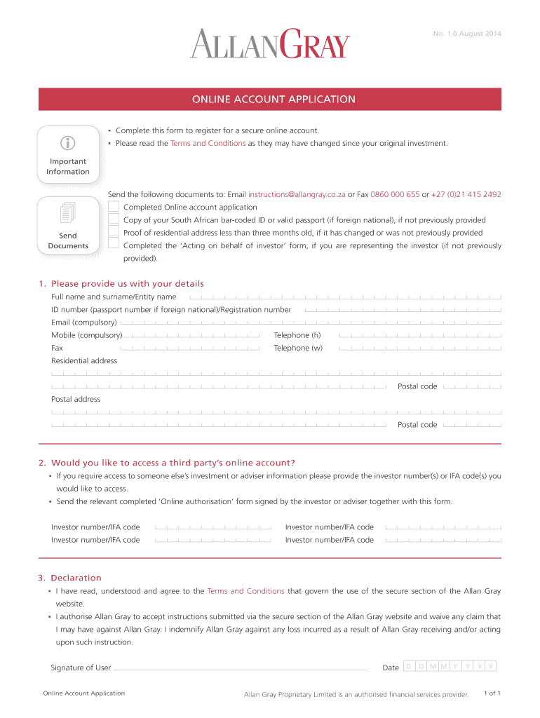 Get the free ONLINE ACCOUNT APPLICATION - Allan Gray - allangray co